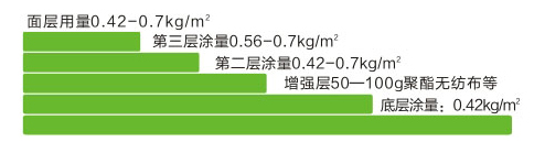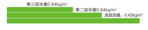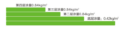 四層總厚度約:2.0mm,總用料量約:3.5kg平方米,適用于單道設(shè)防的建筑防水工程。