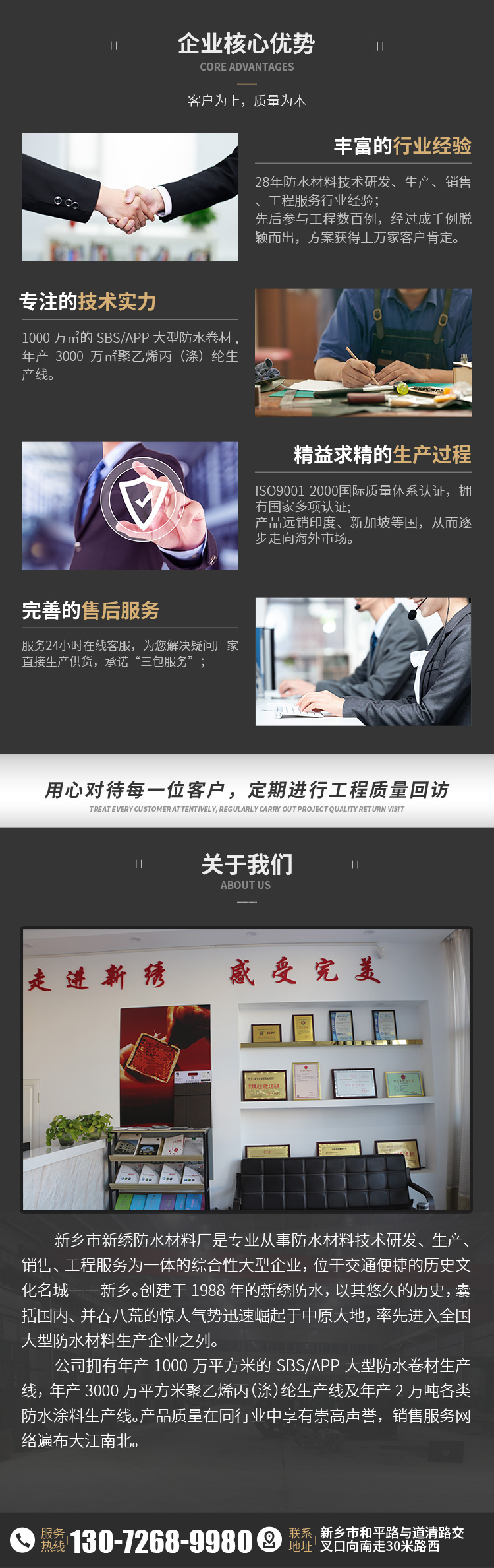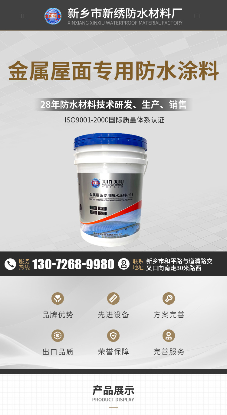 新鄉(xiāng)市新繡防水材料有限公司是一家主要銷售防水涂料,防水卷材等的公司,服務(wù)熱線:13072689980